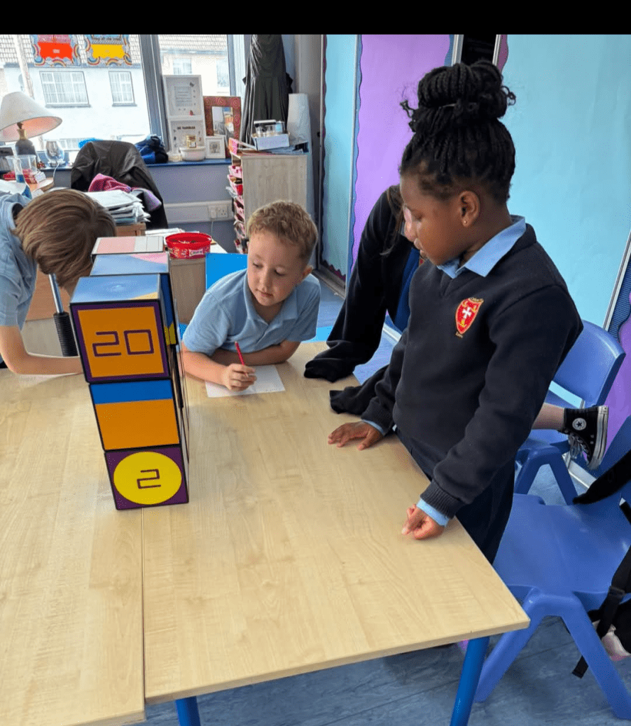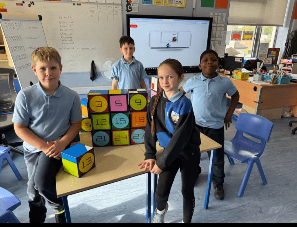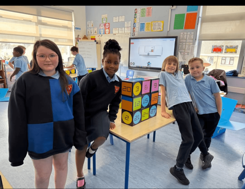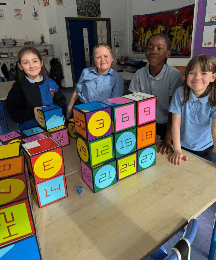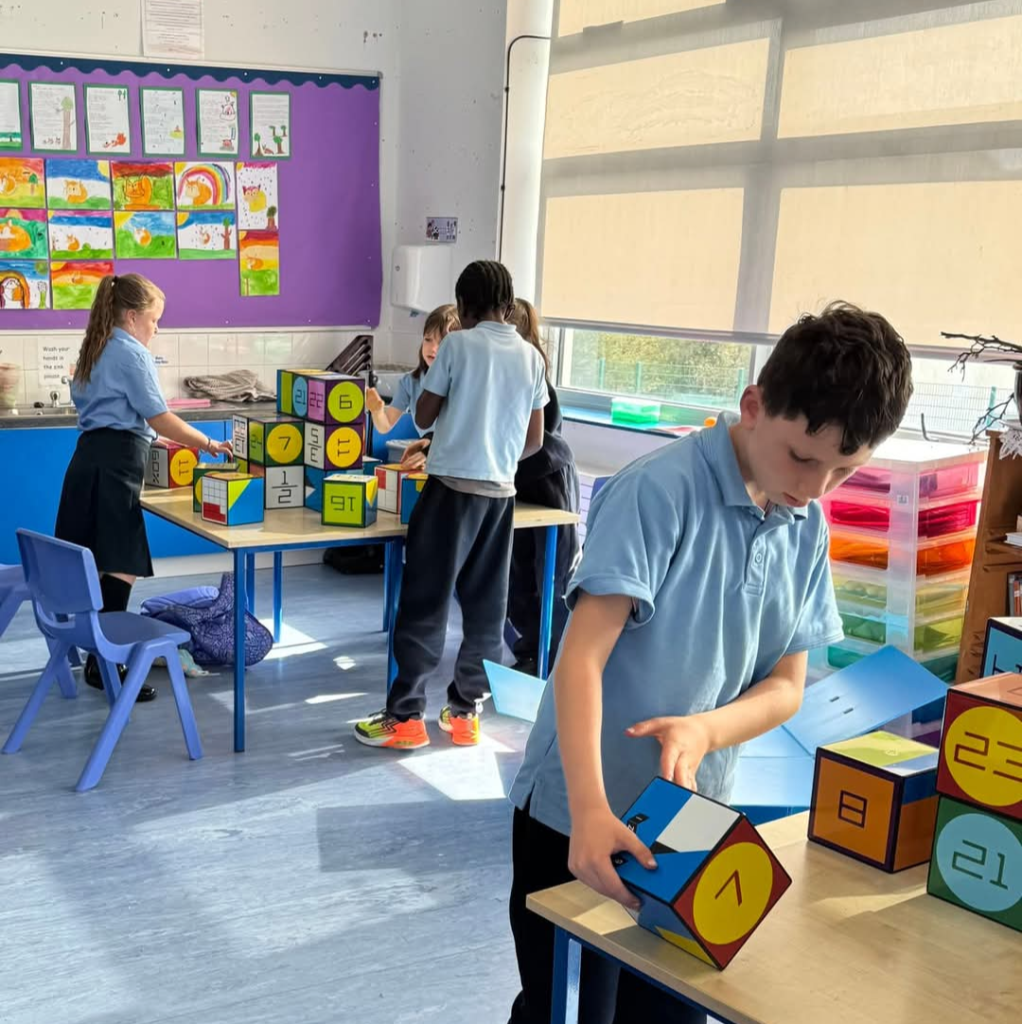 Rather than working only on paper or screens, pupils use the cubes to think with their hands, turning abstract ideas into something they can see, touch, and explore.